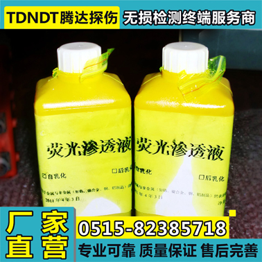 2:熒光染料:“串激”——一種熒光染料受紫外線(xiàn)照射后發(fā)出的熒光波長(cháng)正好與另一種染料的吸收光譜的波長(cháng)相一致,從而被吸收而激發(fā)出熒光。熒光染料的種類(lèi)很多,在黑光的照射下從發(fā)藍光到發(fā)紅色熒光的染料均有,熒光滲透液應選擇在黑光的照射下發(fā)出黃綠色熒光大的染料,這是因為人眼對黃綠色熒光最敏感,從而可以提高檢測靈敏度,我國常用的熒光染料有YJI-43、YJP-15、香豆素化合物MDAC和YJN-68等。